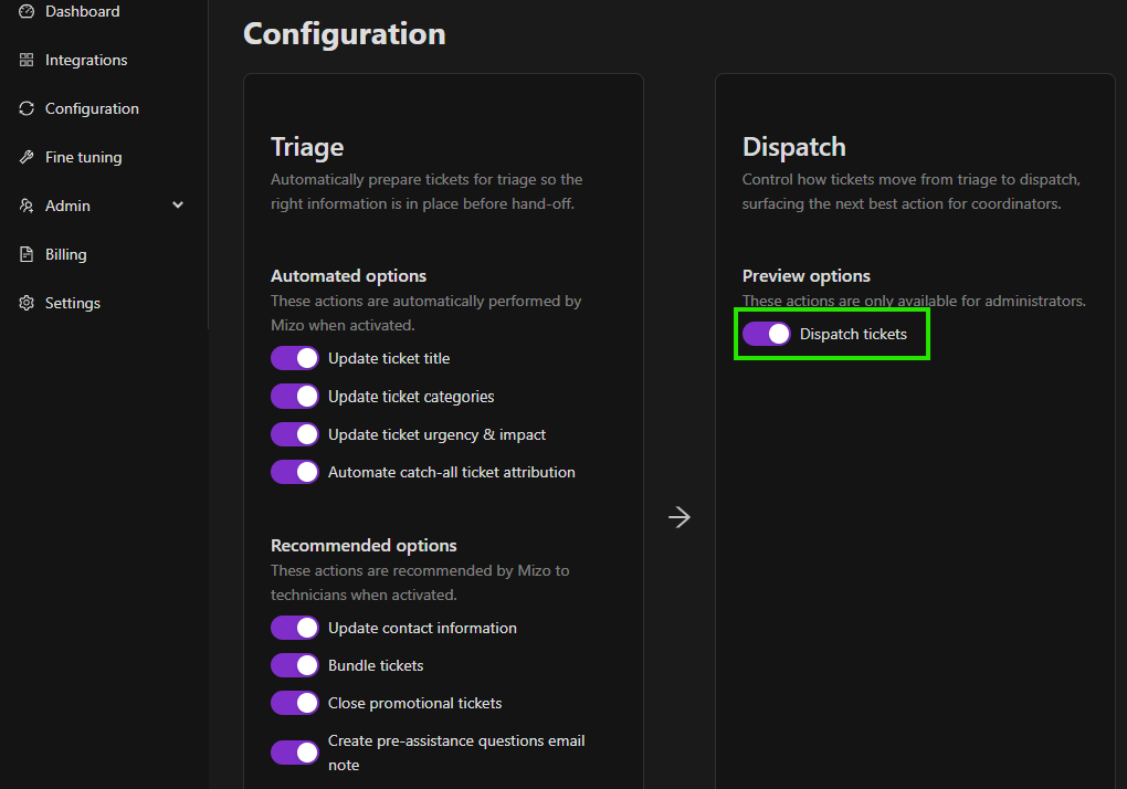 Once enabled in Mizo Dashboard (Link), Mizo automatically uses your connected PSA data to understand who can receive tickets and how to prioritize them.