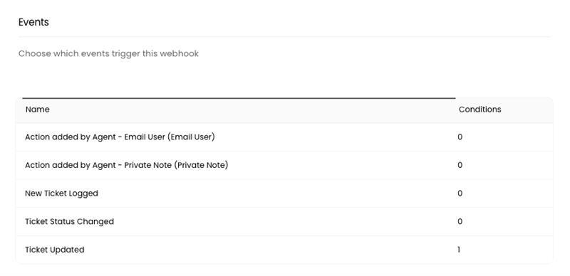 Event Name Notes New Ticket LoggedTicket Status ChangedTicket ChangedField: Client (Or Customer), Change context:Value changed,Rule type:To any valueAction added by AgentAdd the actions equivalent to: 1. Logging a Private Note on the ticket 2. Sending an Email to the customer INFO